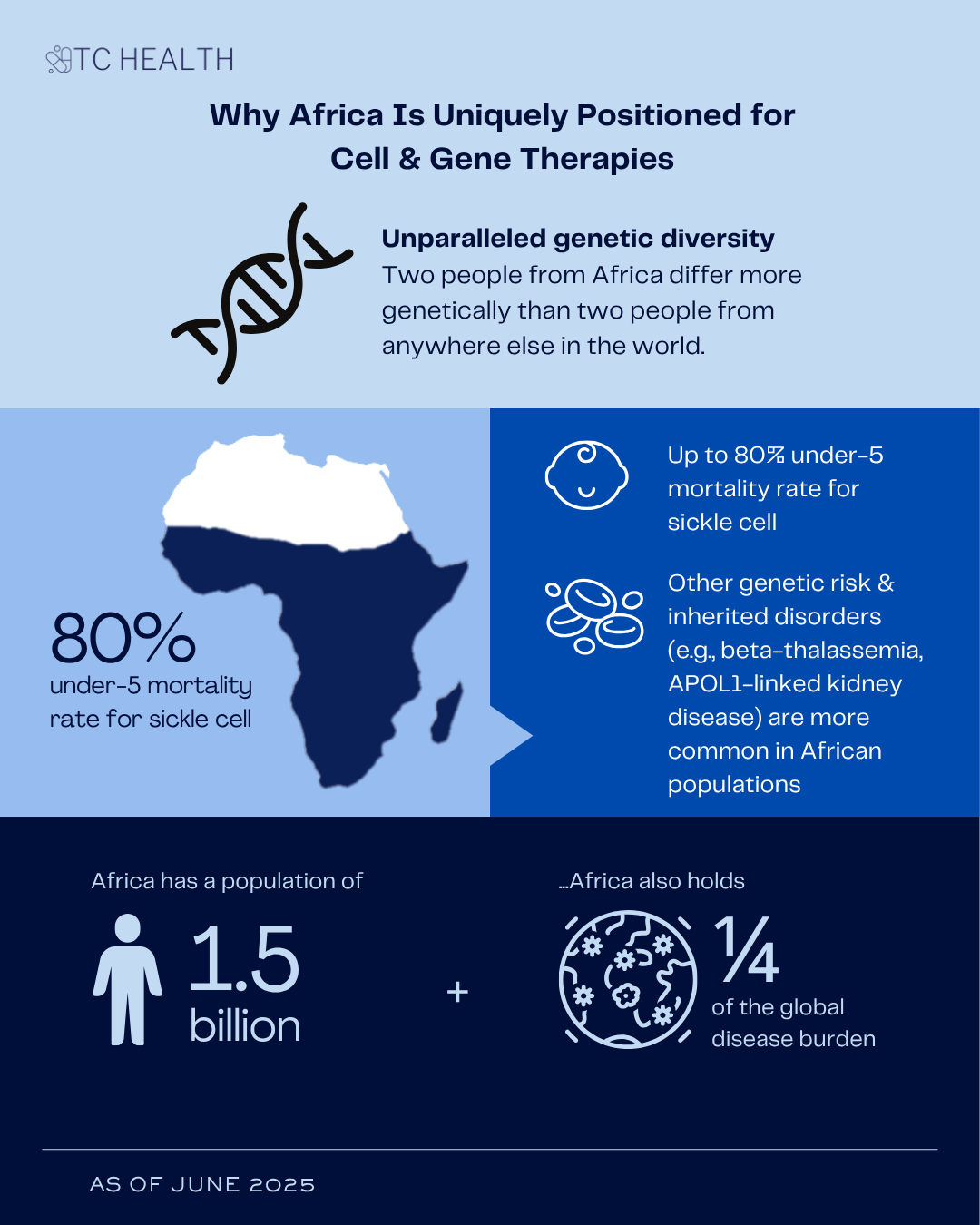 Add to that a population of 1.5 billion as well as a quarter of the global disease burden and the potential for genomic advancements becomes even more compelling. So, the question isn't whether CGTs are relevant to Africa, it's when, and how, they will arrive.